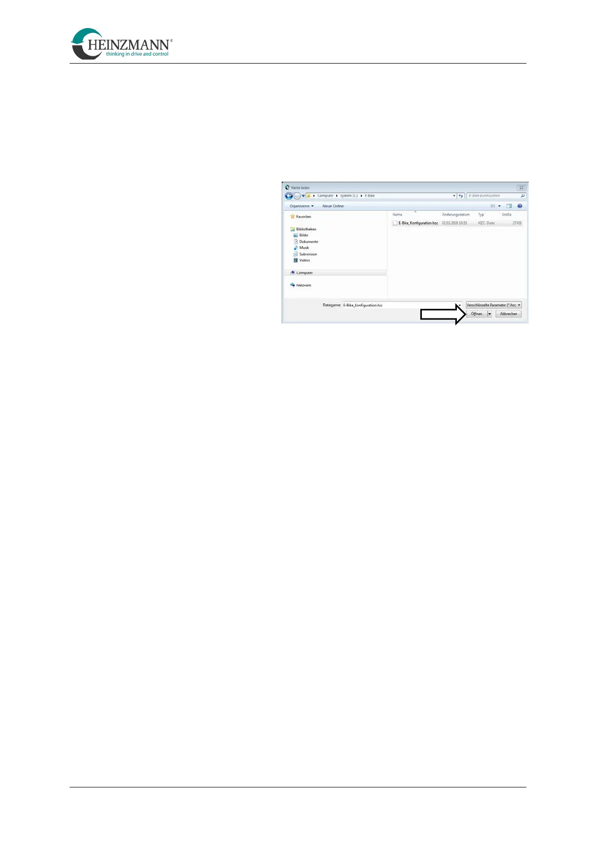 • Click on the "Transfer parameters to the control unit" symbol (see menu bar [D])