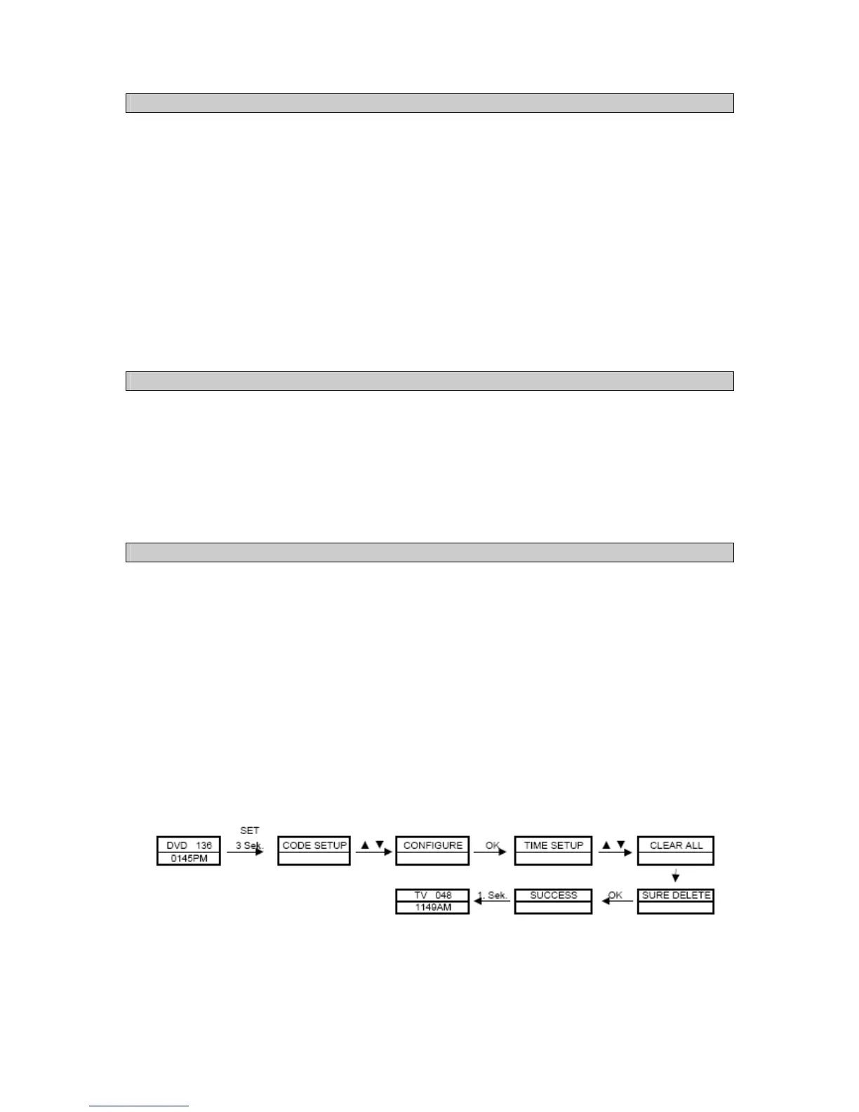 Attention! Doing so will also reset all of the learned codes, settings and clock.