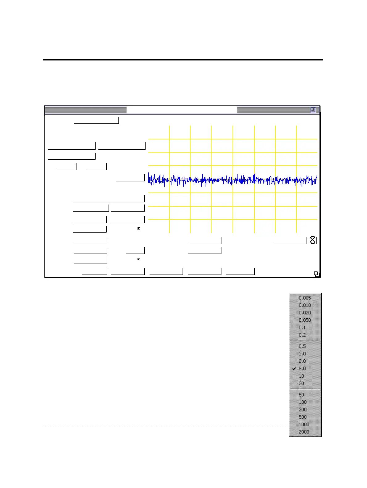 gain popup menu. The low-gain range goes from 0.005 to 0.2, the