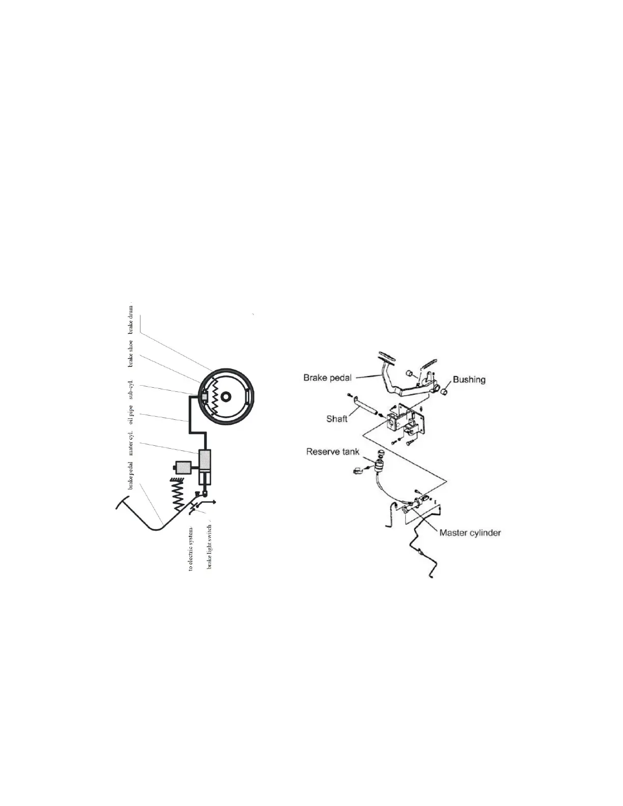 The brake system is the front two-wheel braking type consisting of brake pedal,