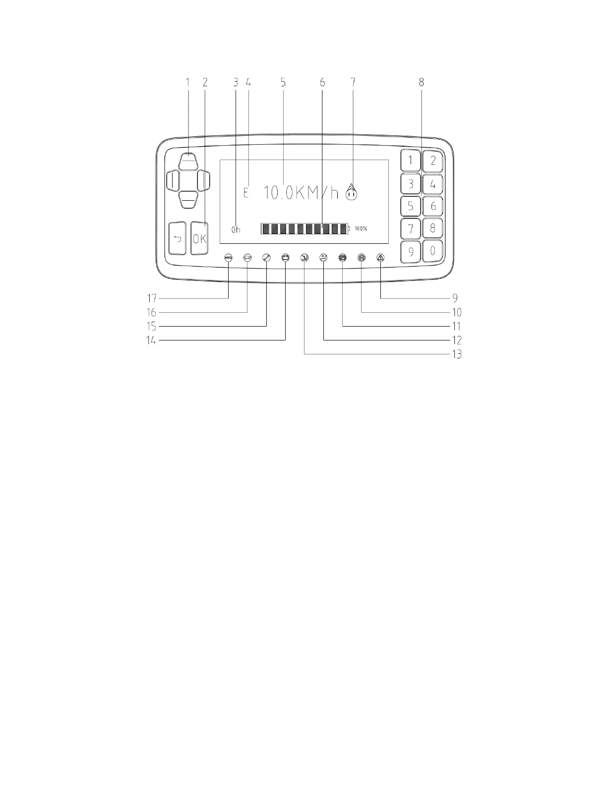 6.Display of battery dump energy 7.Display of steering angle 8.Numeric key
