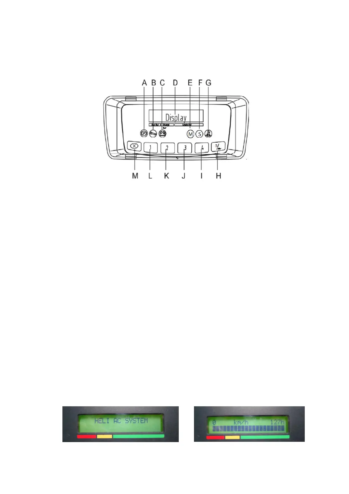 (F) Low traction speed working indicator (G) Warning lights for seat switch