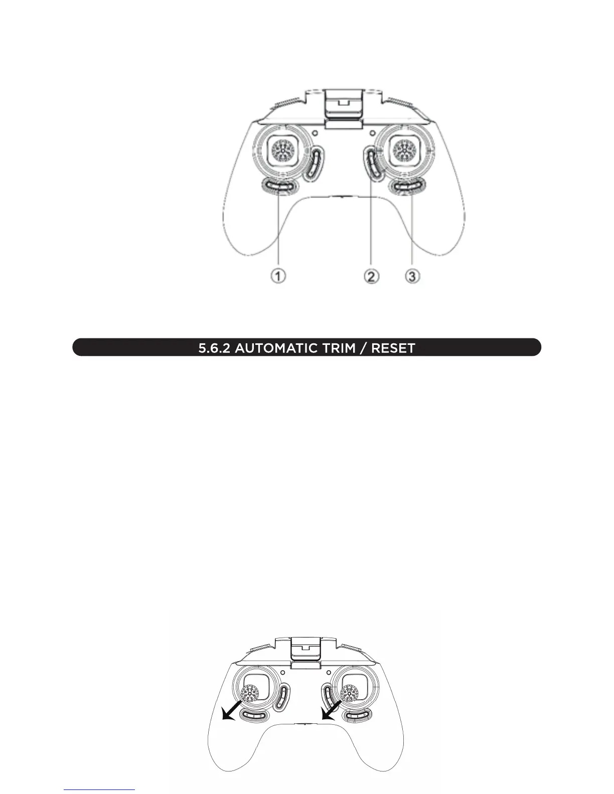 Automatic trim: To return the transmitter to it’s original default setting press and hold down the