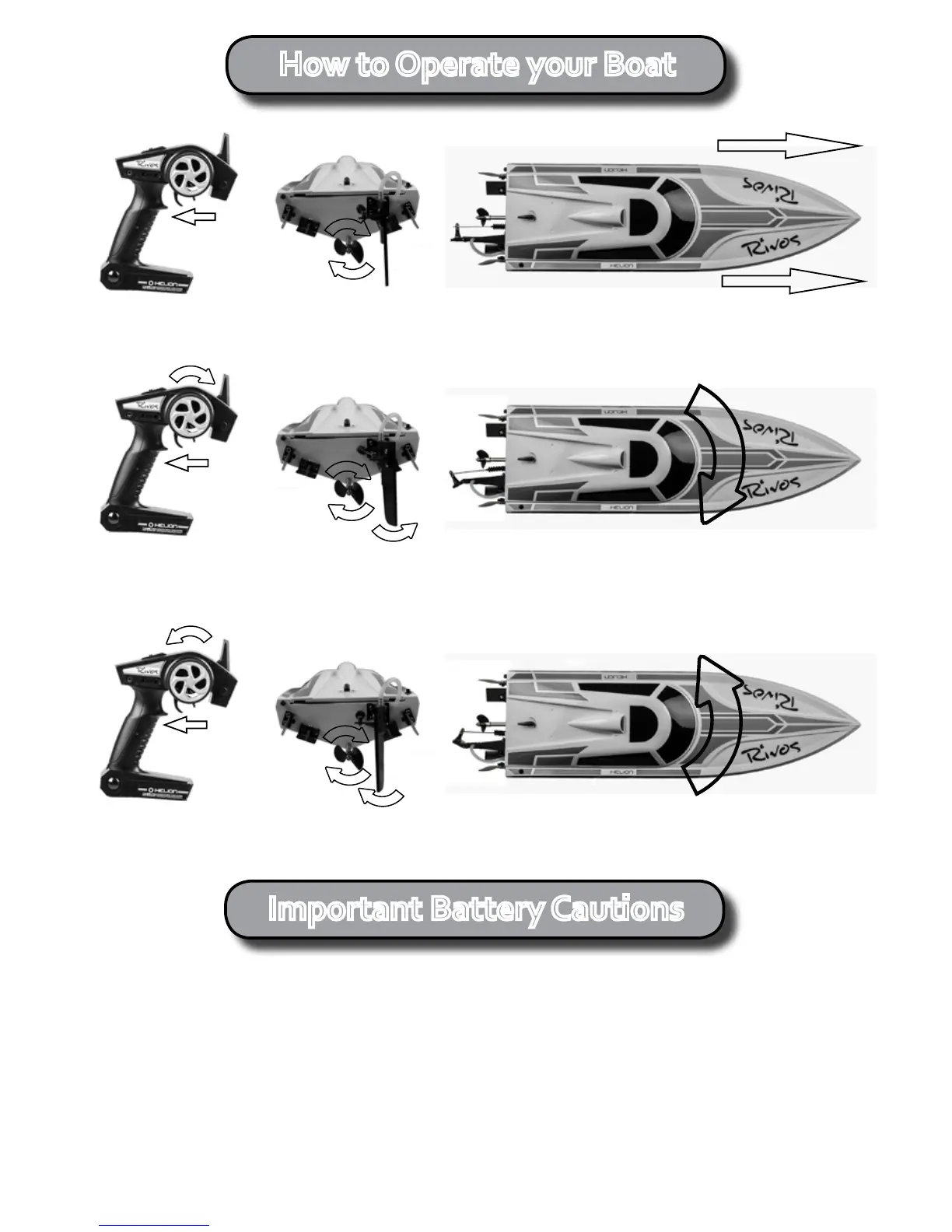 speedcontrolisproporonal,thefartheryoupullitthefastertheboatwillgo.Releasethetriggertostop.