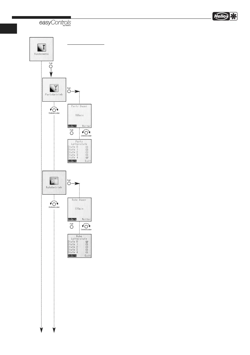 Einstellung der Dauer und der Lüfterstufe beim Partybetrieb.