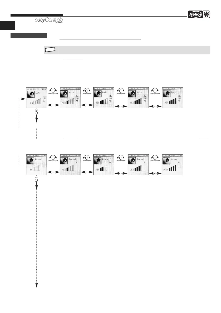 MENÜ – Lüftungsstufenregelung automatisch / manuell: