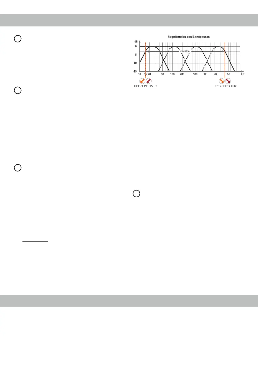 Hochpass und mit dem Regler 8 (LPF) der Tiefpass