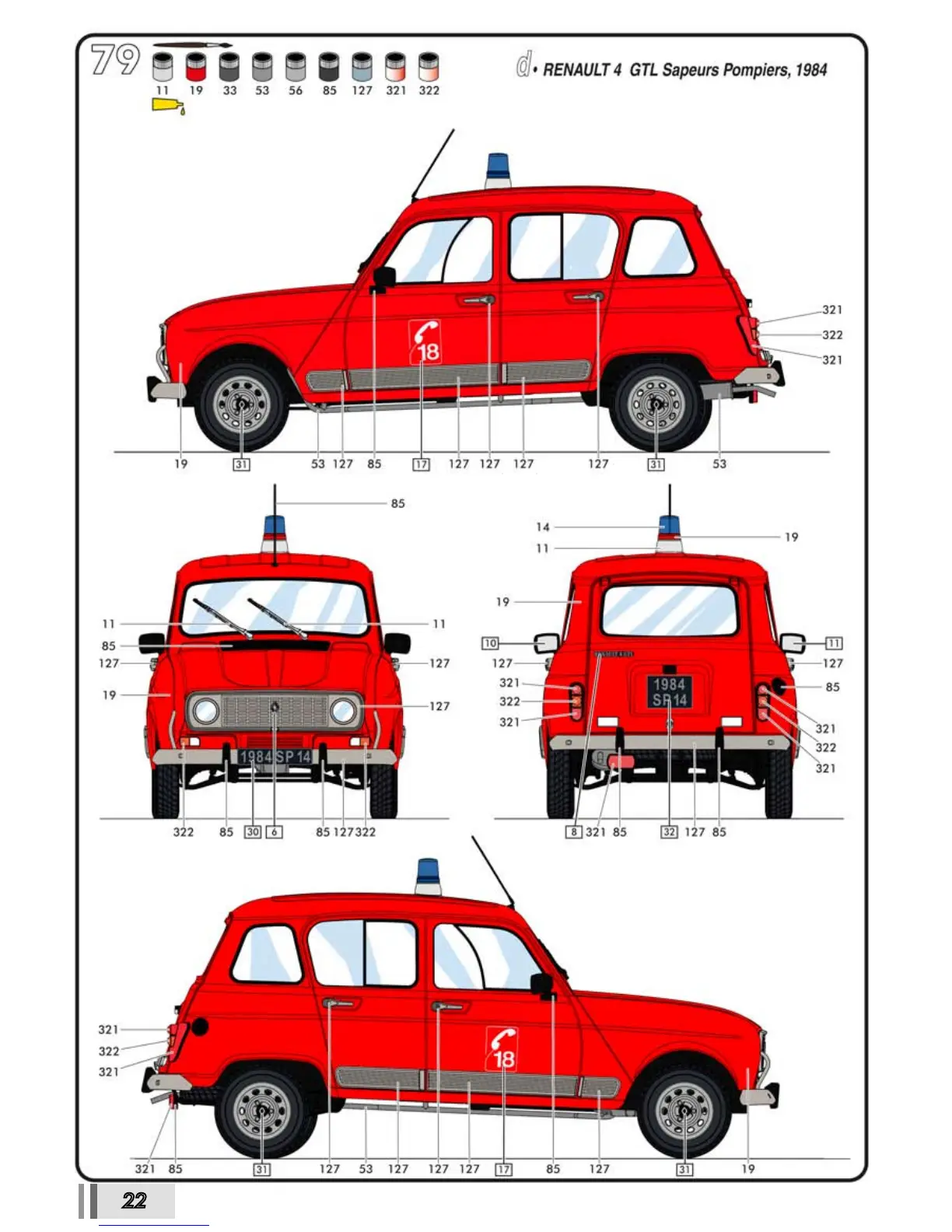 HELLER 80759 - Renault 4 GTL Sapeurs Pompiers 1984 Paint Scheme