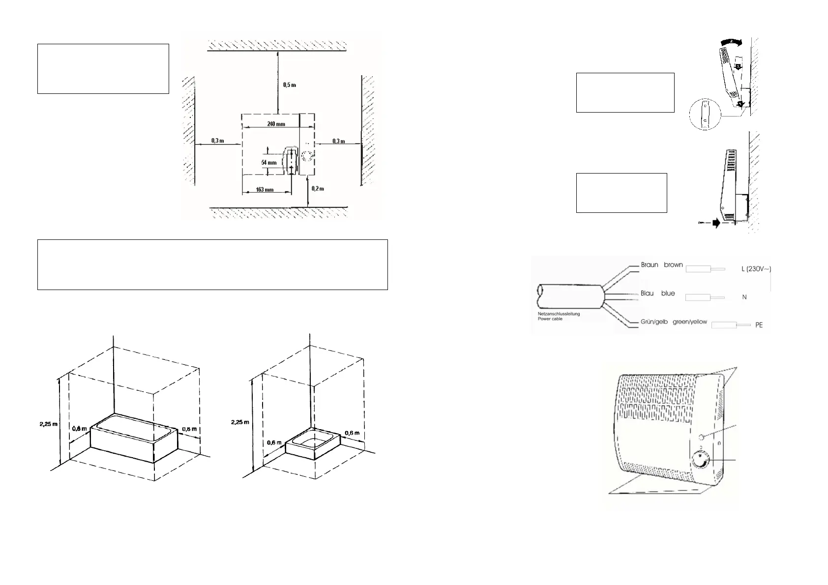 Nicht innerhalb der dargestellten Bereiche montieren. Nationale Vorschriften beachten!