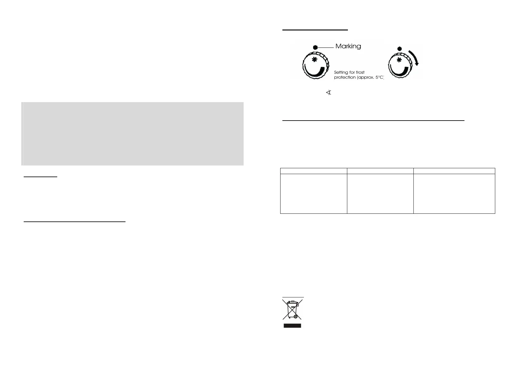 The frost protector is an electrical convector heater. It is fitted with a thermostat for the correct