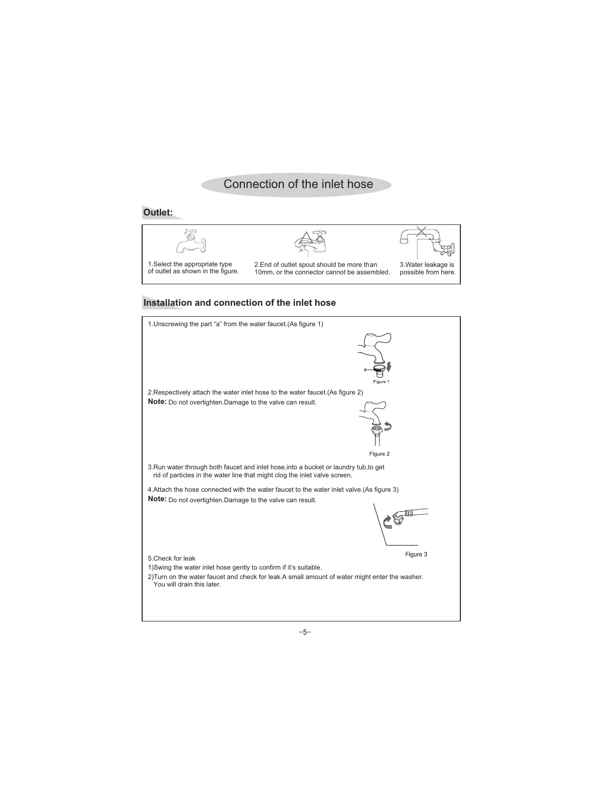 2)Turn on the water faucet and check for leak.A small amount of water might enter the washer.