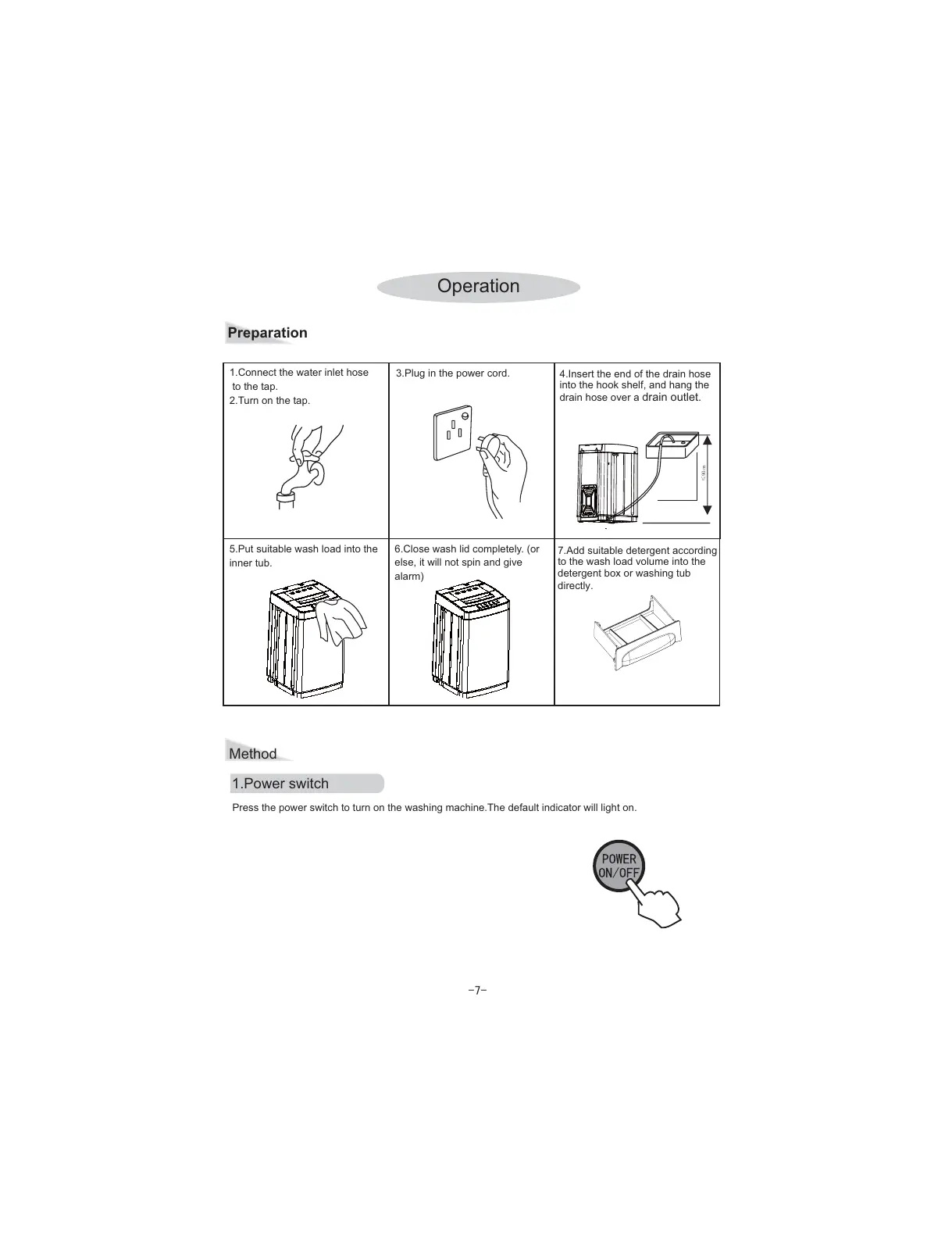 Press the power switch to turn on the washing machine.The default indicator will light on.