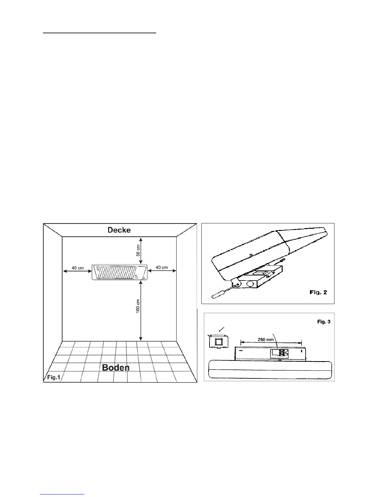 Abstand der Bohrungen – 260 mm und Dübel setzen (Fig. 3). Quarzstrahler mit den Dübelschrauben an