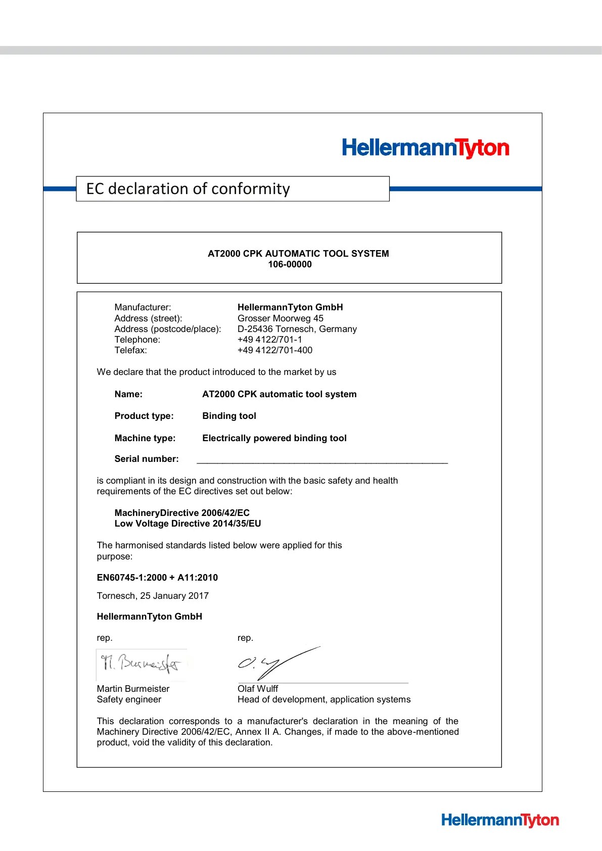 Machinery Directive 2006/42/EC, Annex II A. Changes, if made to the above-mentioned