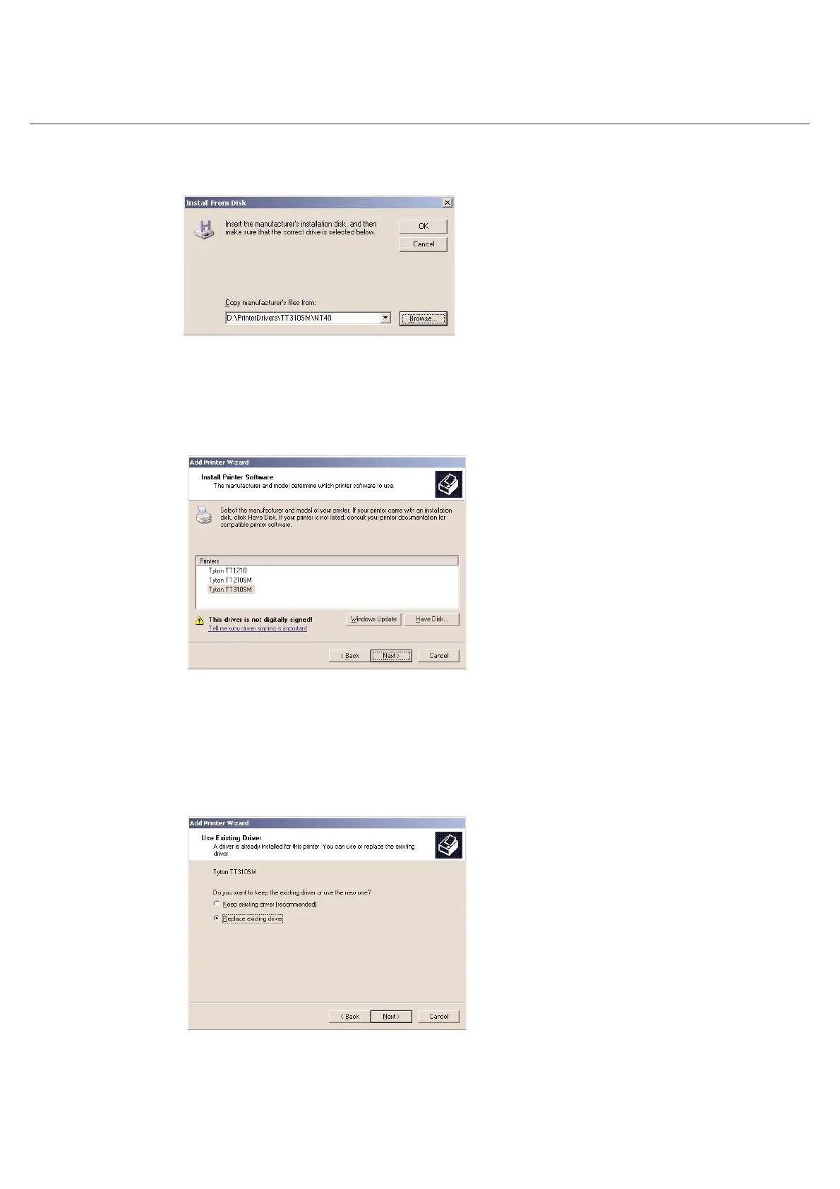 This screen will ONLY appear if updating the existing TT210SM, TT310SM or TT1210 driver. If updating, select Replace