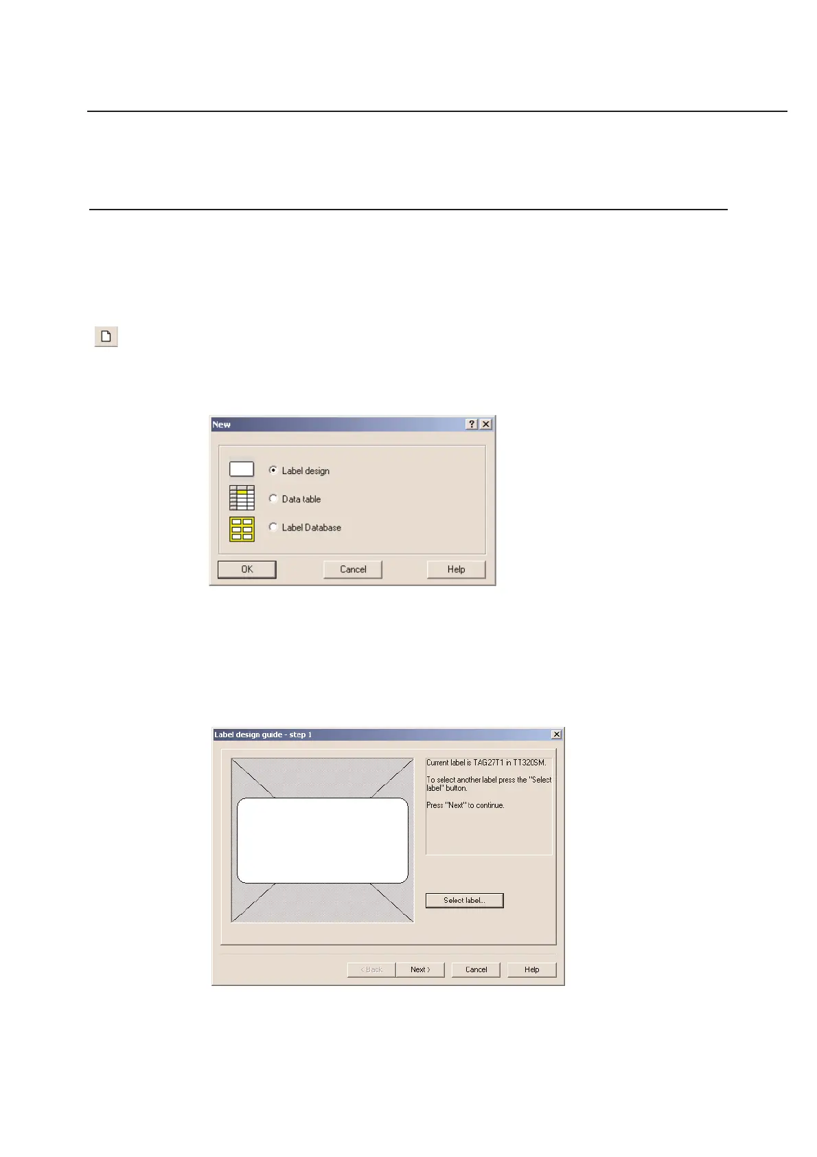 You can open a new label design by clicking on the appropriate button and clicking OK.