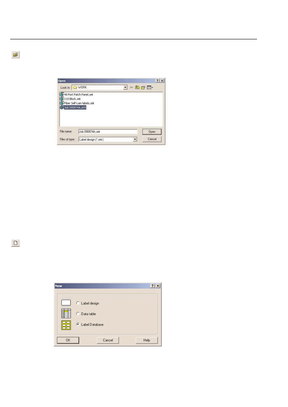 the extension .xml (for label design). You may choose the type of file by using the Files of type: pull down menu.