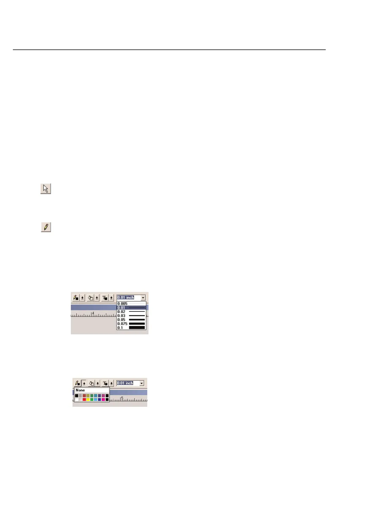 To draw an object, first select the type of object you want from the tool bar or the menu. Now move the cursor to