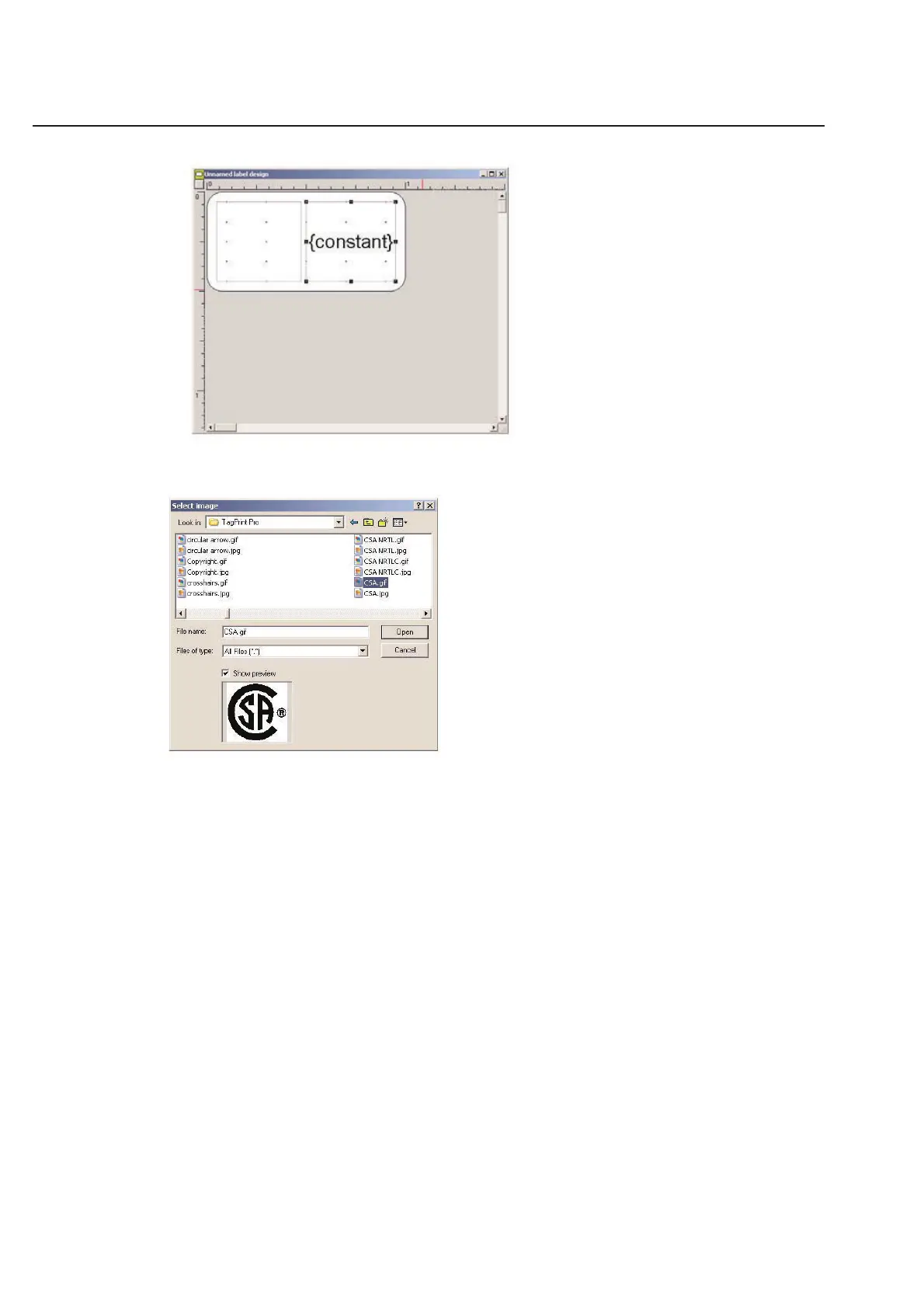 Double-click on the empty box that represents your image. TagPrint Pro will automatically open up the default clip art
