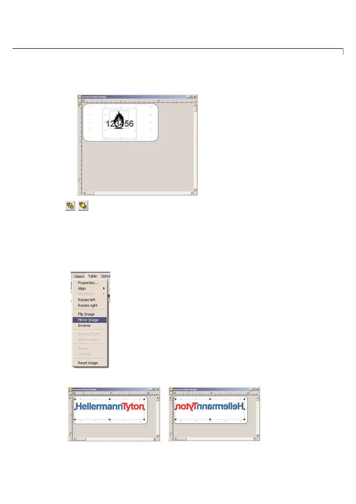 TagPrint Pro offers the options of manipulating graphic images in these ways: Flipping, Mirror, and Inverse Contrast.