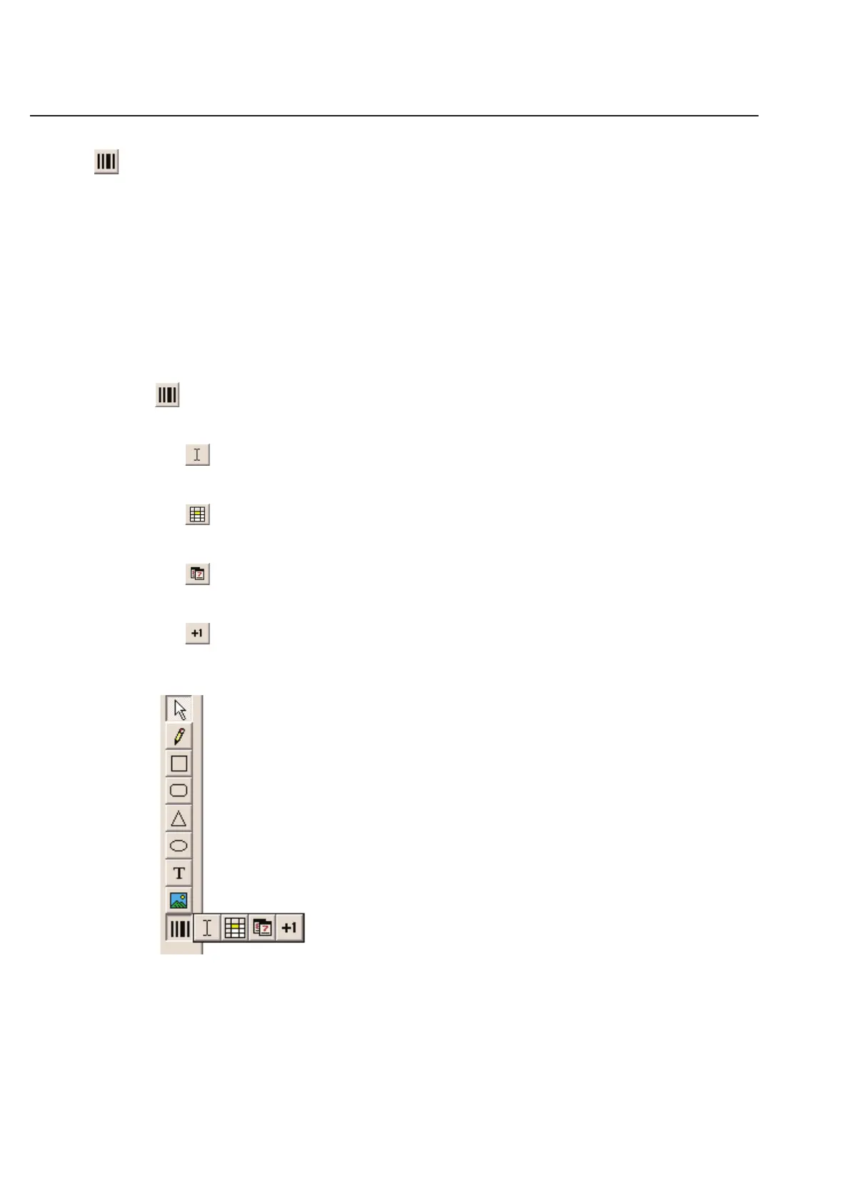 The Barcode icon that appears last (at the bottom) of this vertical row appears like a small barcode. Click once
