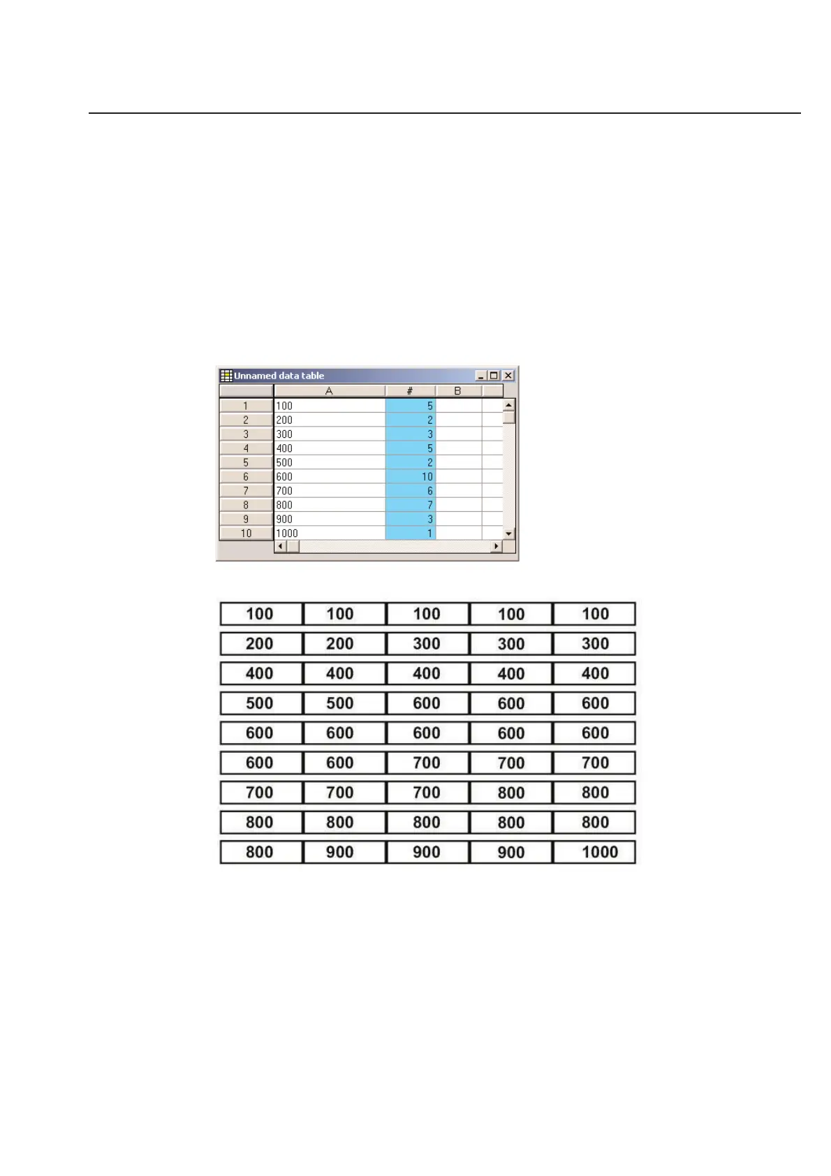 The table above would have the resulting print out: