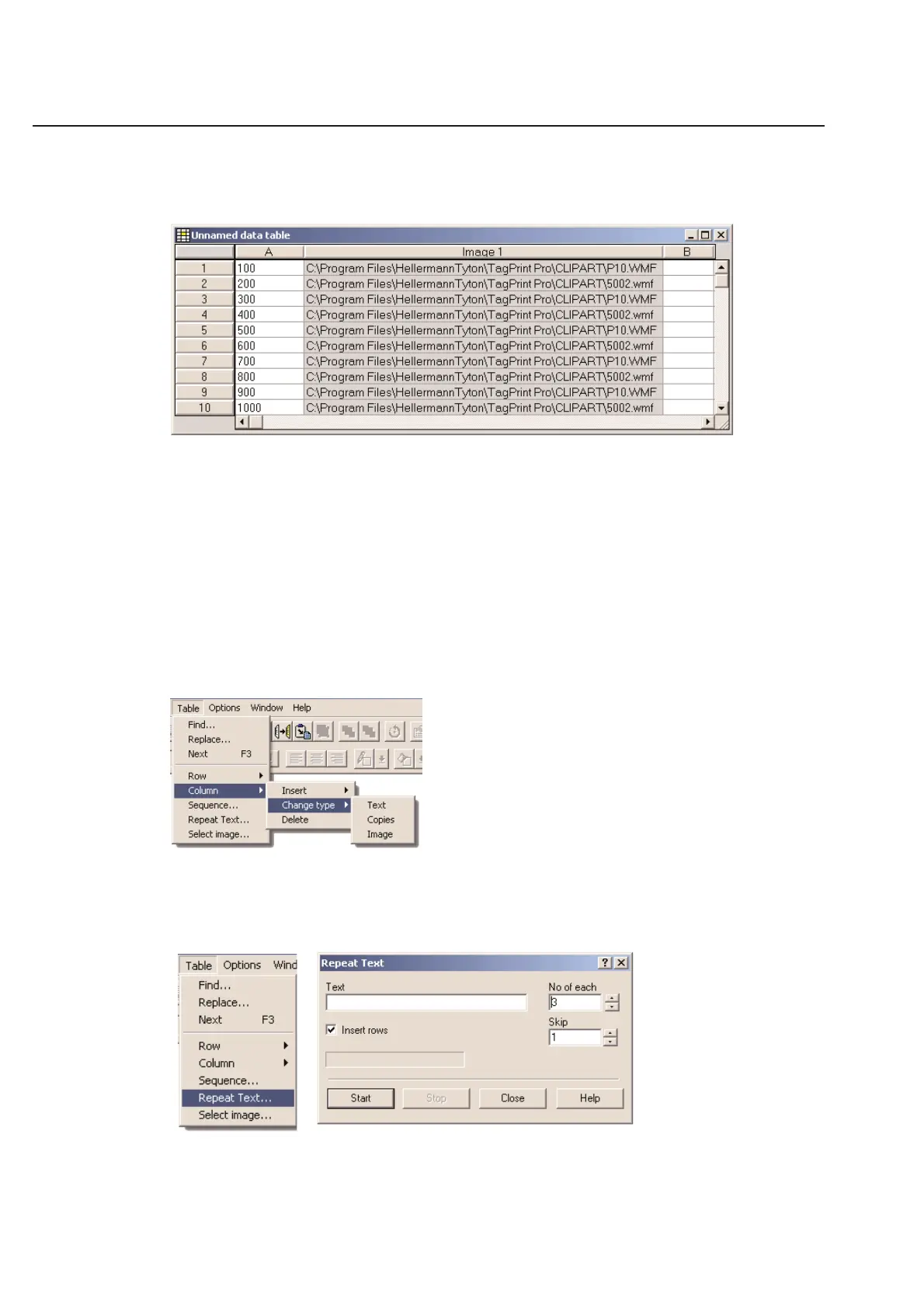 You may change the column type through the Table menu in TagPrint Pro. First, select the column you wish to