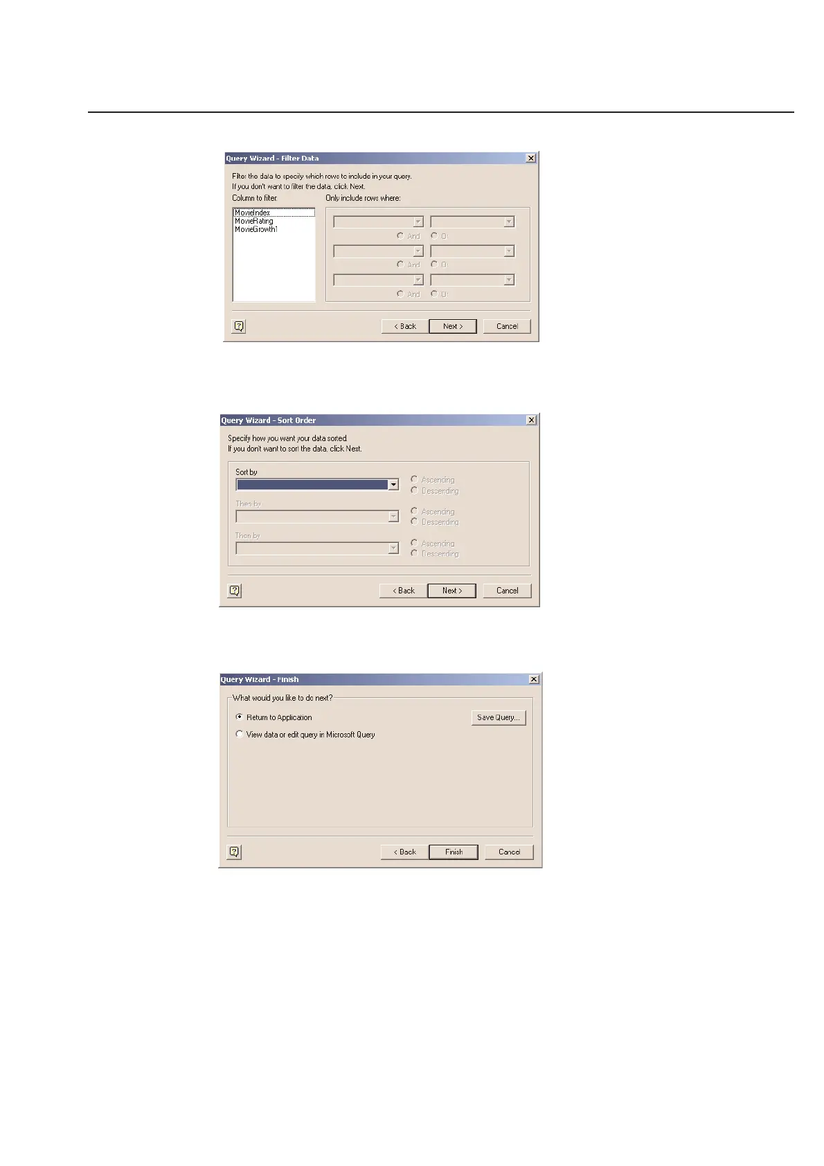 This allow you so filter the data if needed (Again consult your manual for MS QUERY in Windows to establish exactly