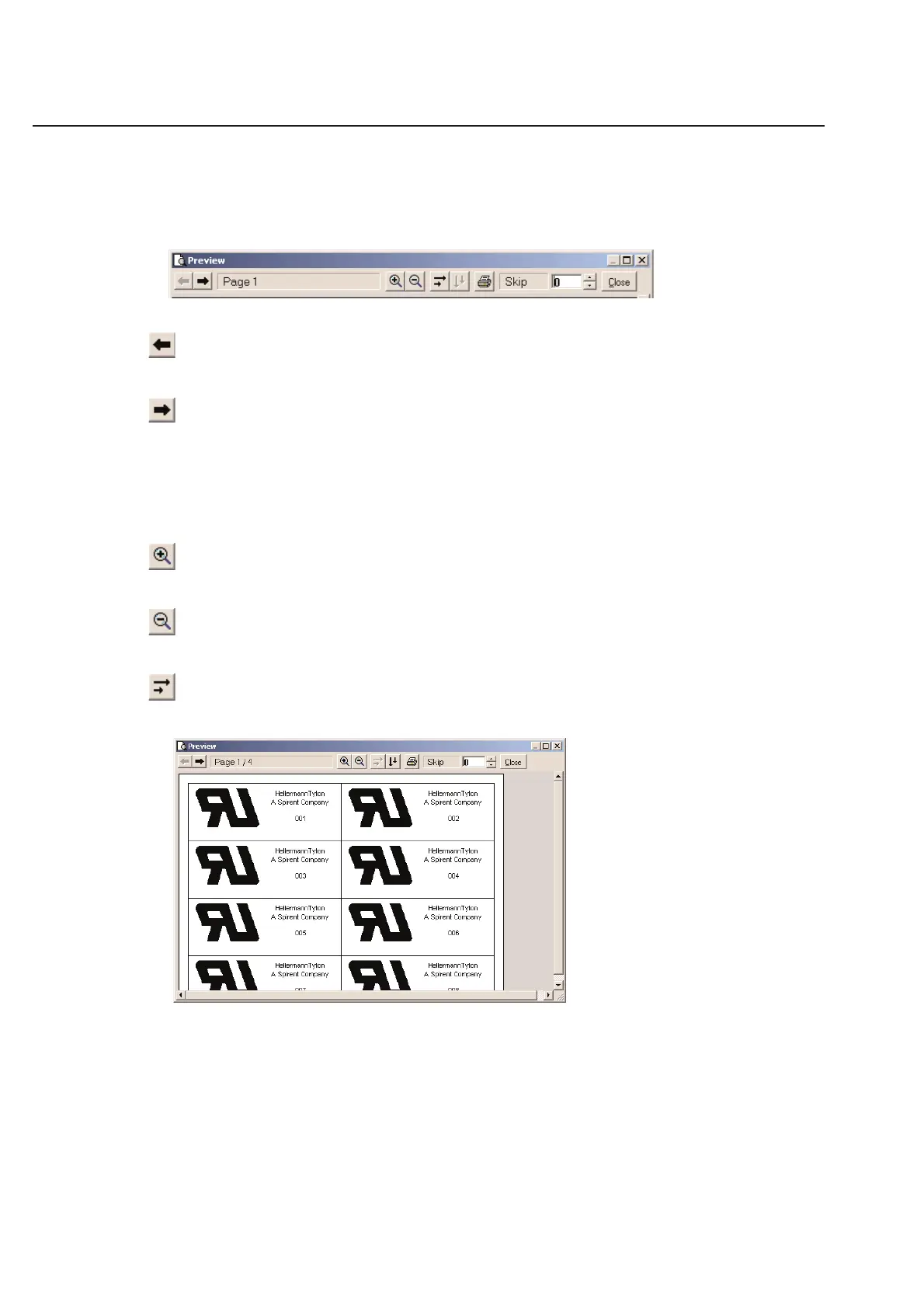The tool bar above your label can be used to navigate through your labels prior to printing.