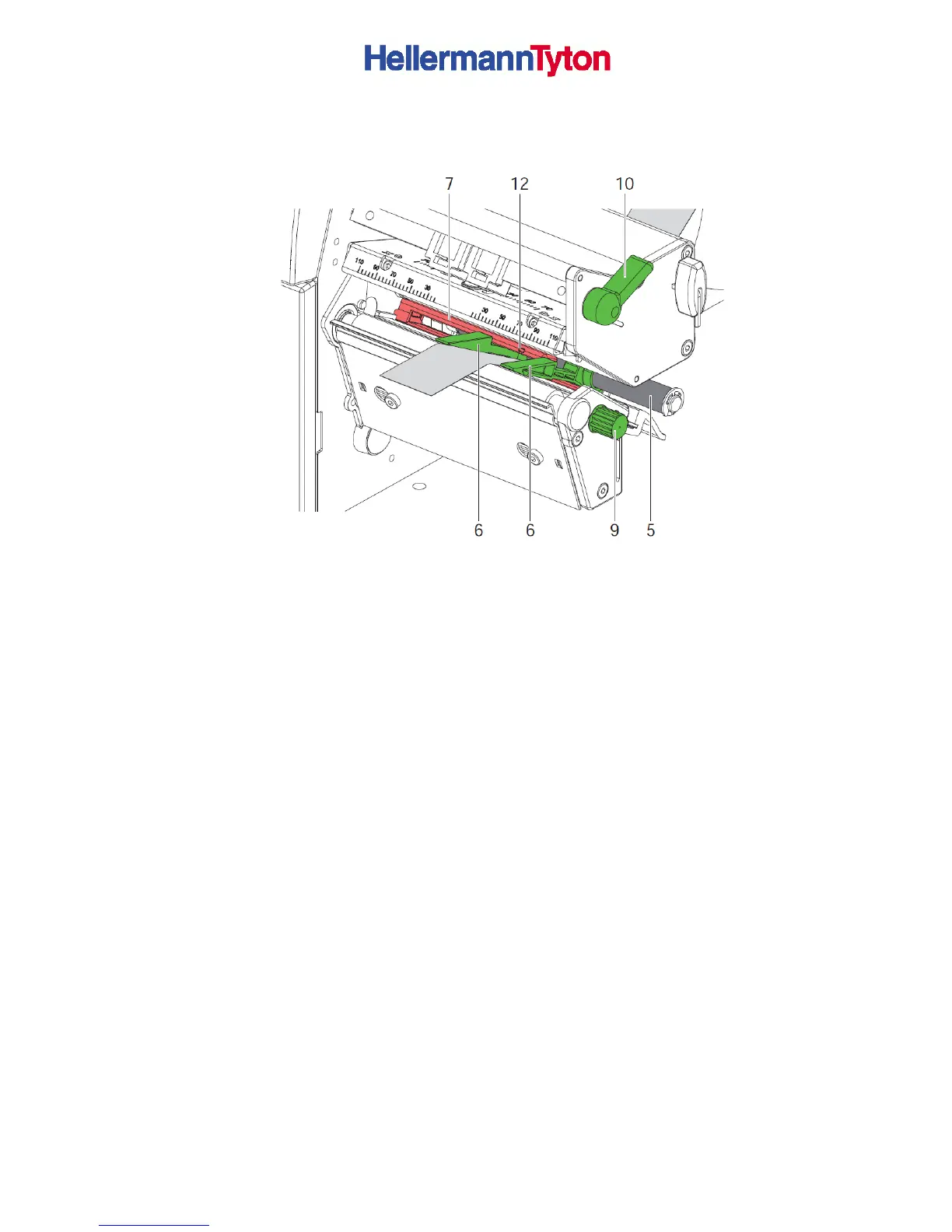 4. Guide media strip through the label sensor (12) in such a way that it leaves the print