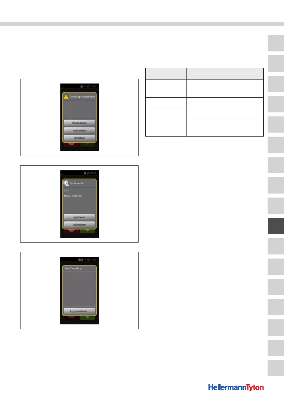 Följande tabell gör det enklare att fastställa fel och deras