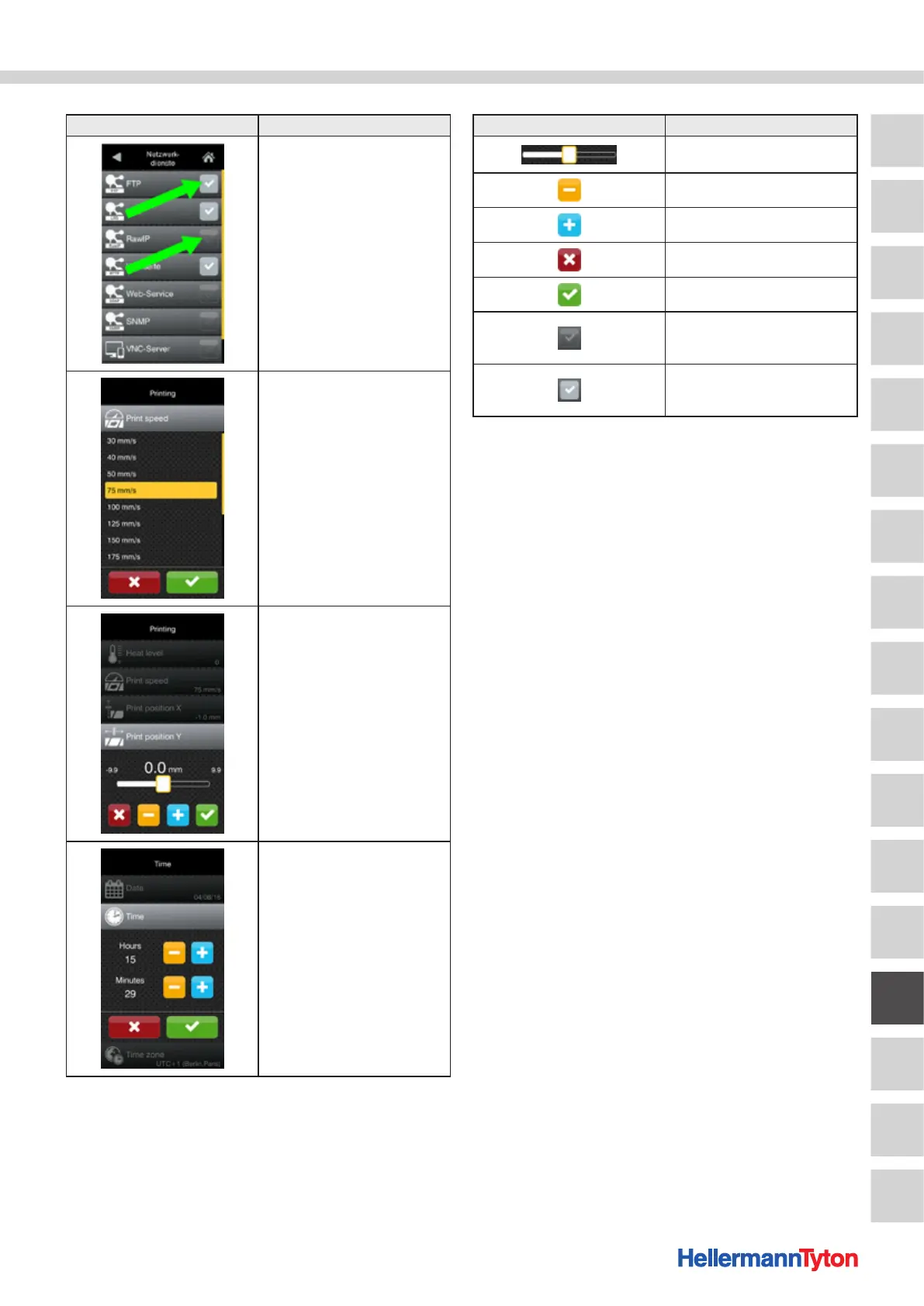 A paraméter-beállítás ikonjai Jelentés