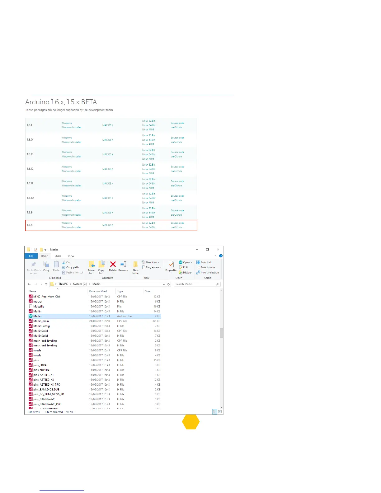 3. Unzip the firmware folder. In the Marlin folder, double-click on “Marlin.ino” to open the program.