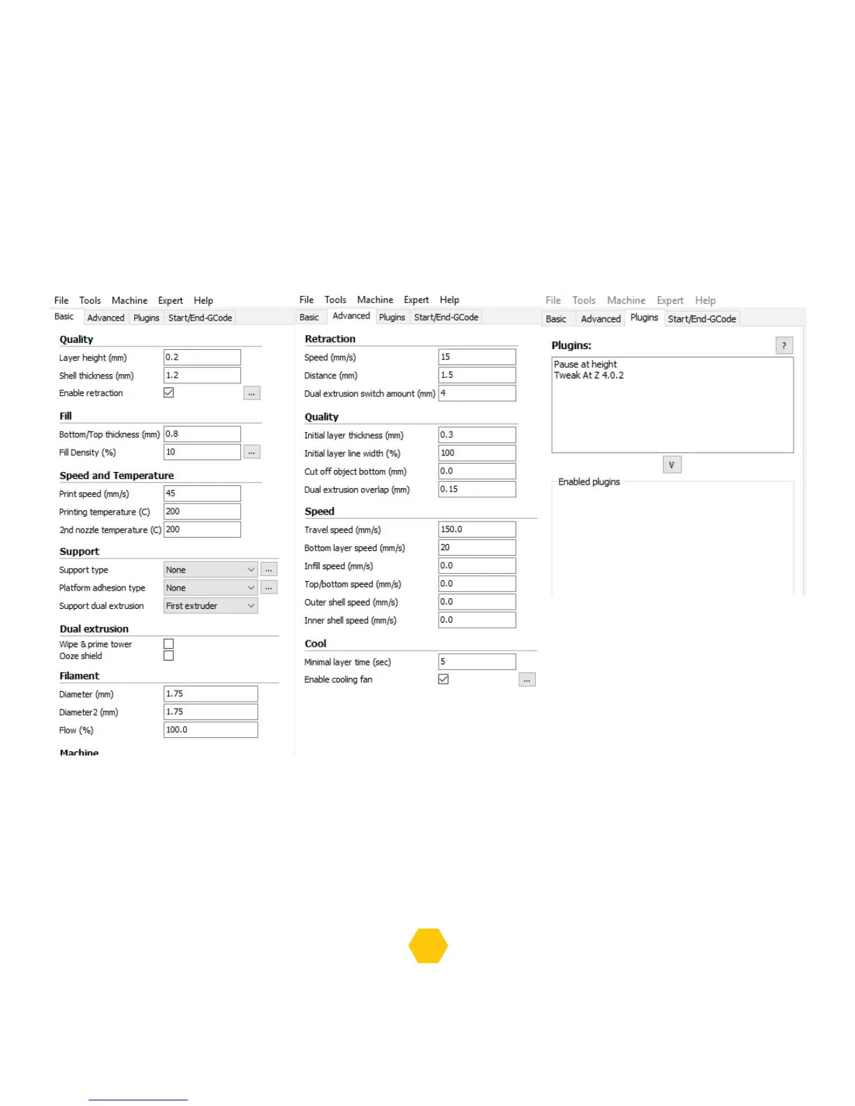 For PLA filament, recommended settings are: a printing temperature of about 200ºC;