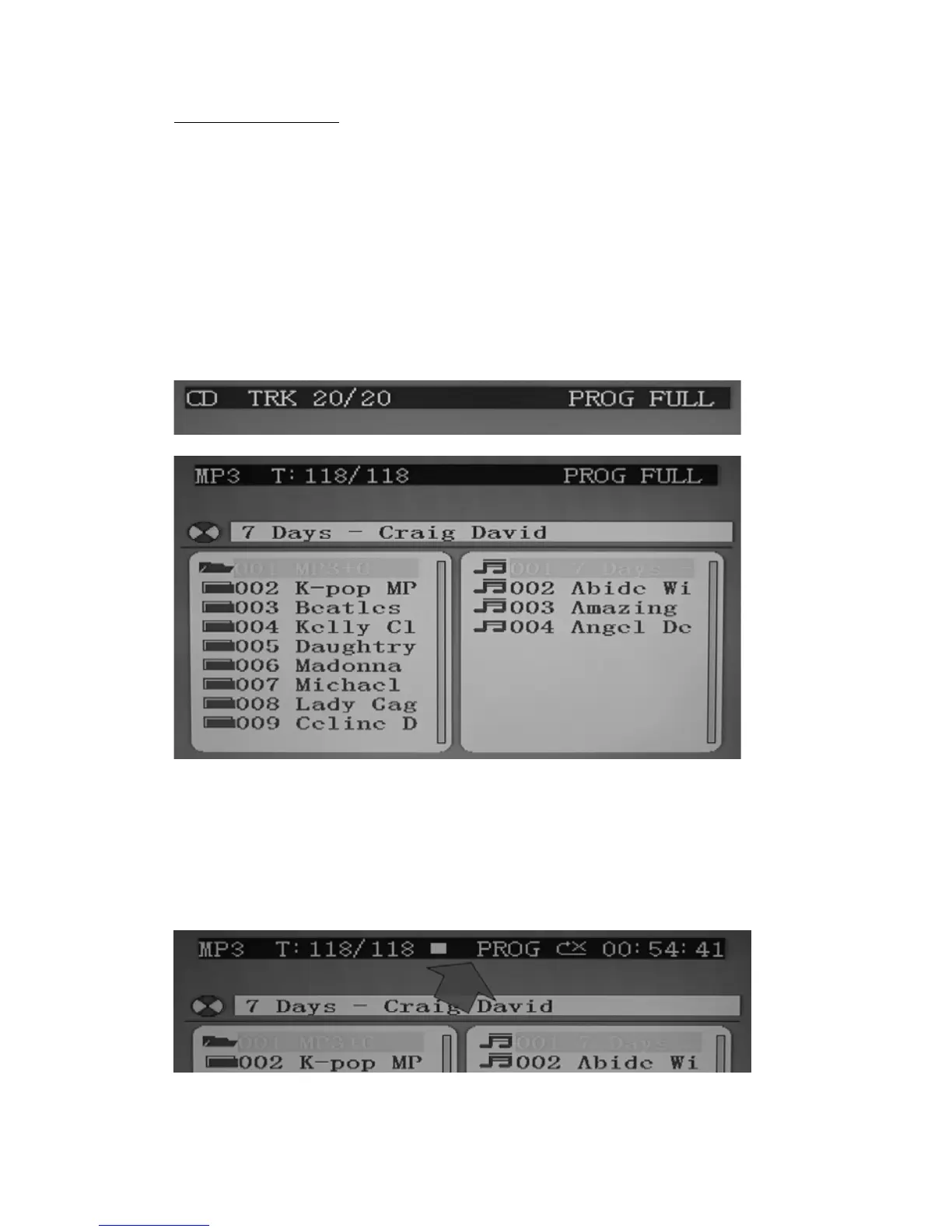 tracks, “FU” will appear in the LED DISPLAY and “PROG FULL” will appear on