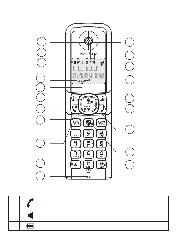 HelloBaby HB2688-2 - Overview; Handset and Display Overview