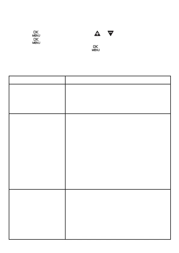 • Press to enter the menu; then or to select DEFAULT, then