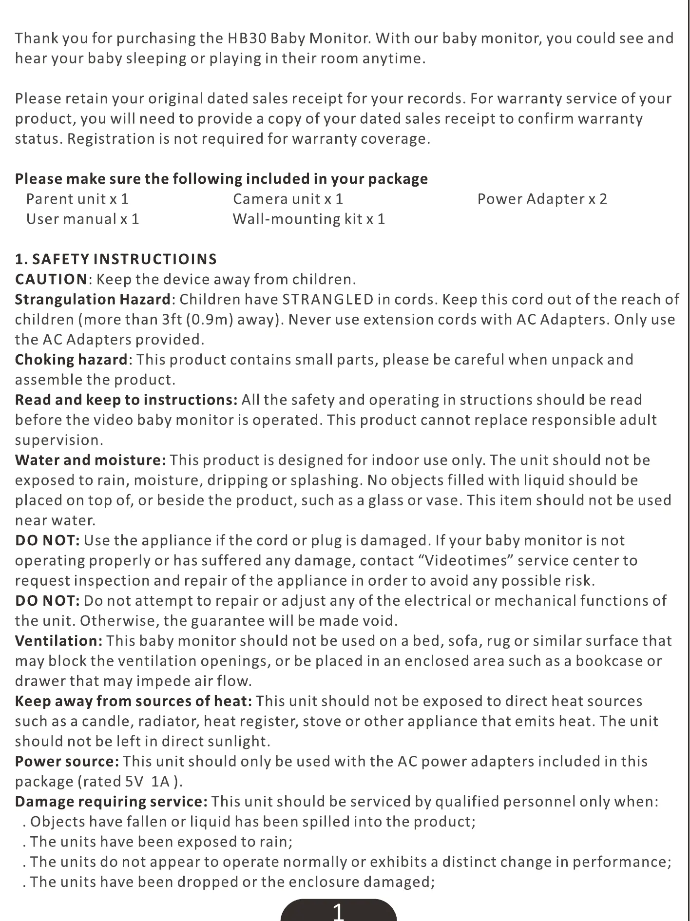 Thank you for purchasing the HB30 Baby Monitor. With our baby monitor, you could see and