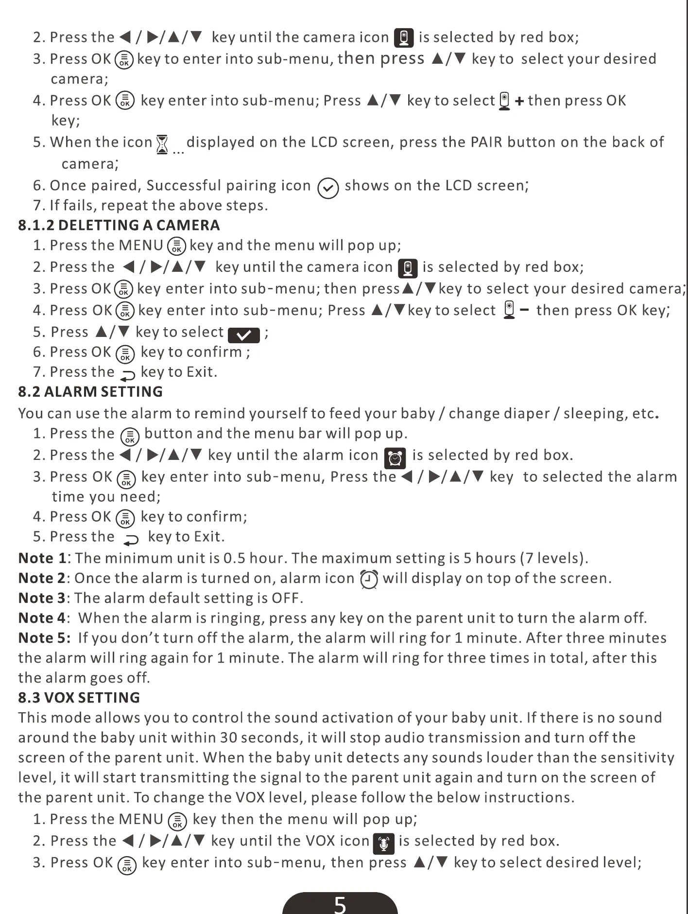 the parent unit. To change the VOX level, please follow the below instructions.