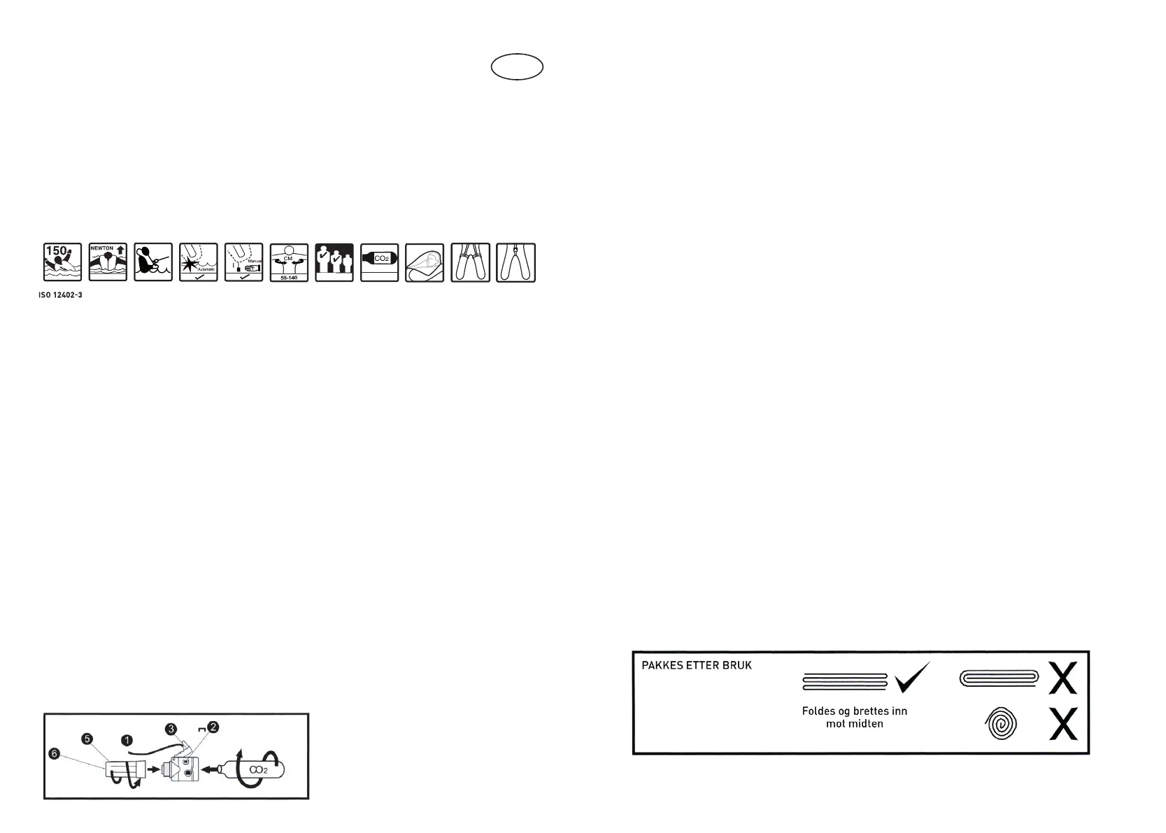 NB! CO2 patronen må ikke utløses etter at vesten er oppblåst med innblåsningsslangen.