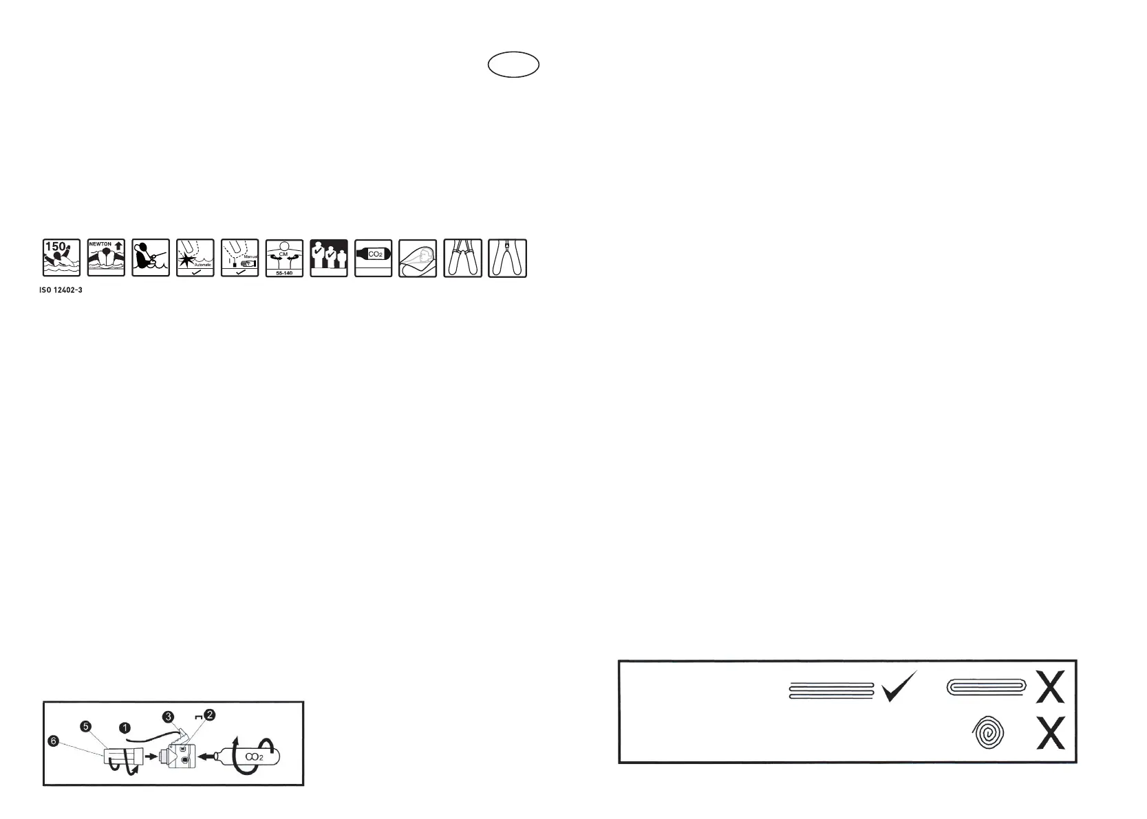 Obs! CO2-patronen får inte utlösas när räddningsvästen har blåsts upp med uppblåsningsröret.