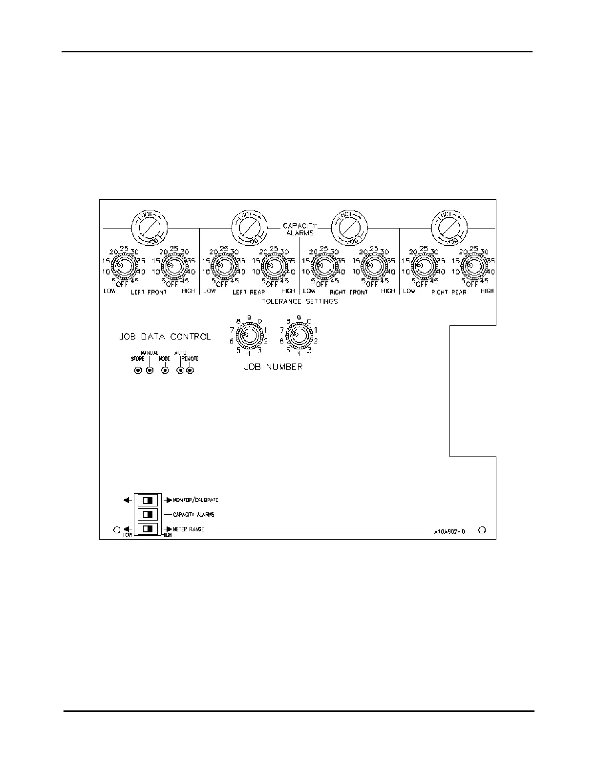 Capacity and tolerance alarm adjustments are located on the inside door panel. Capacity alarms provide