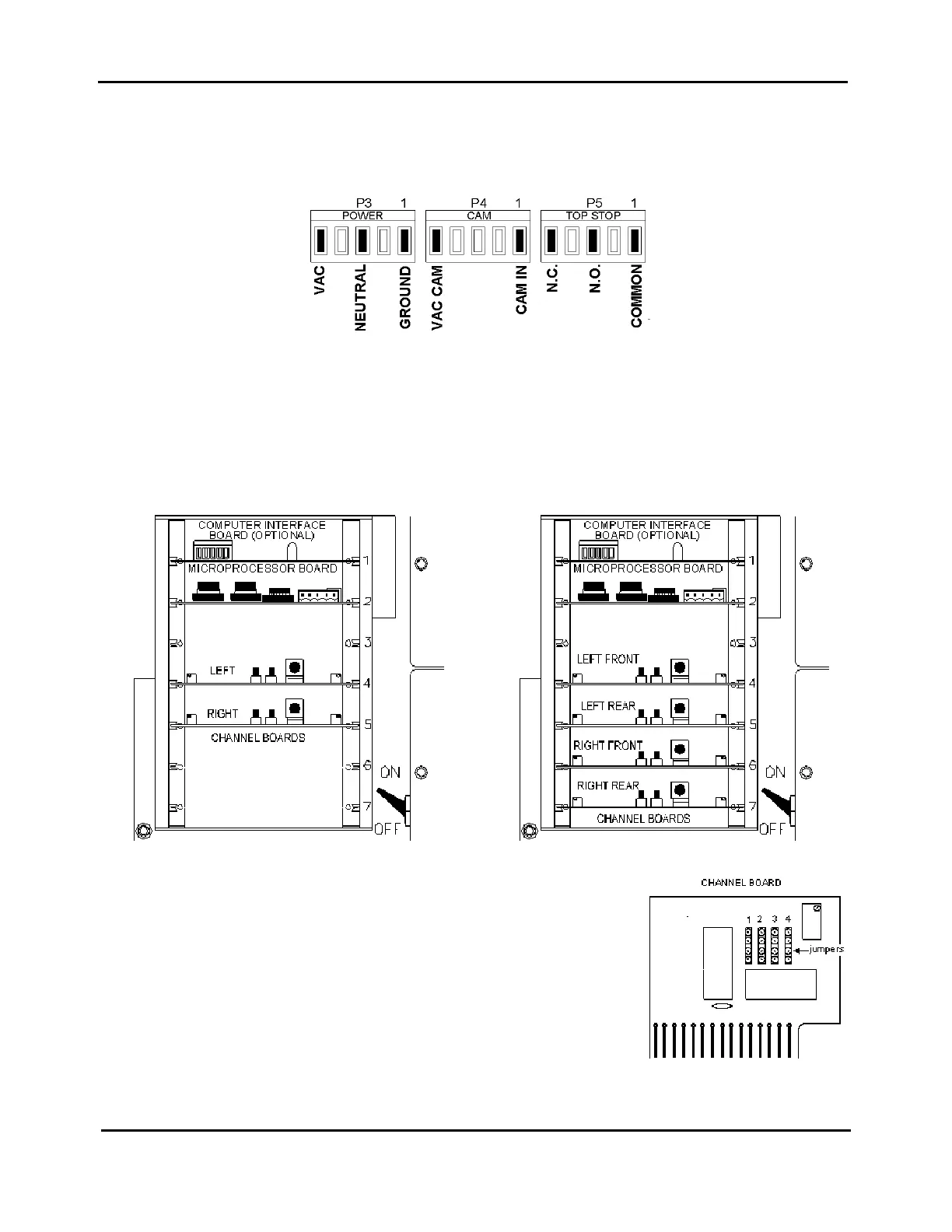 Channel boards are interchangeable. Use the jumper plugs on the individual