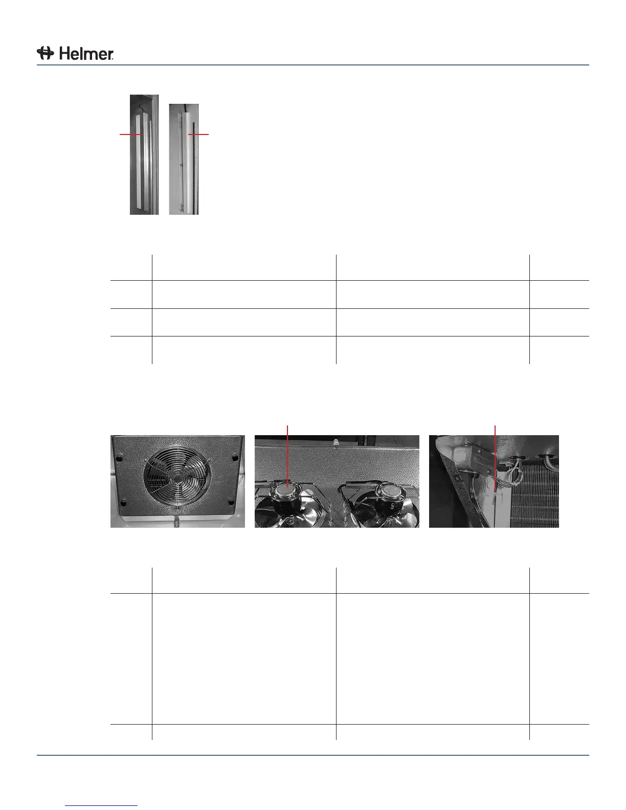 Left: Unit cooler (single-door model shown). Center and right: Unit cooler parts.