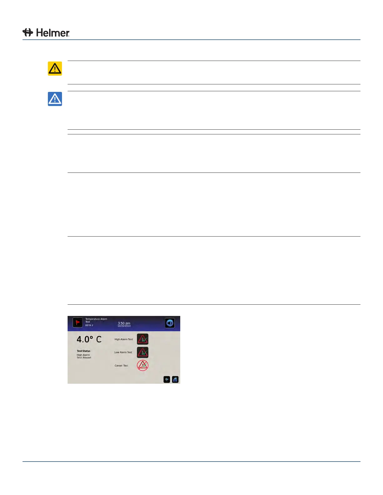 Test alarms to ensure they are working correctly. The HaemoBank™ has alarms for chamber