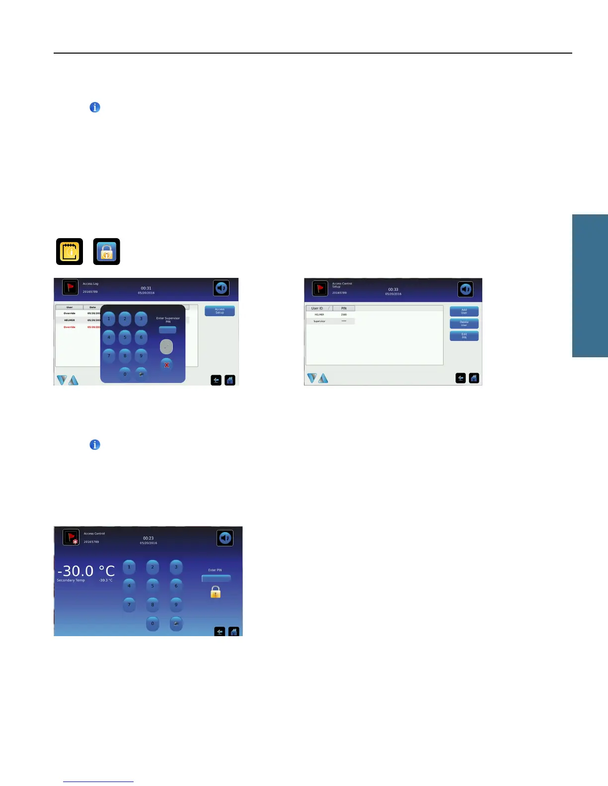 Enter the supervisor PIN to set up Access Control and follow the on-screen prompts to add, delete or edit user information.