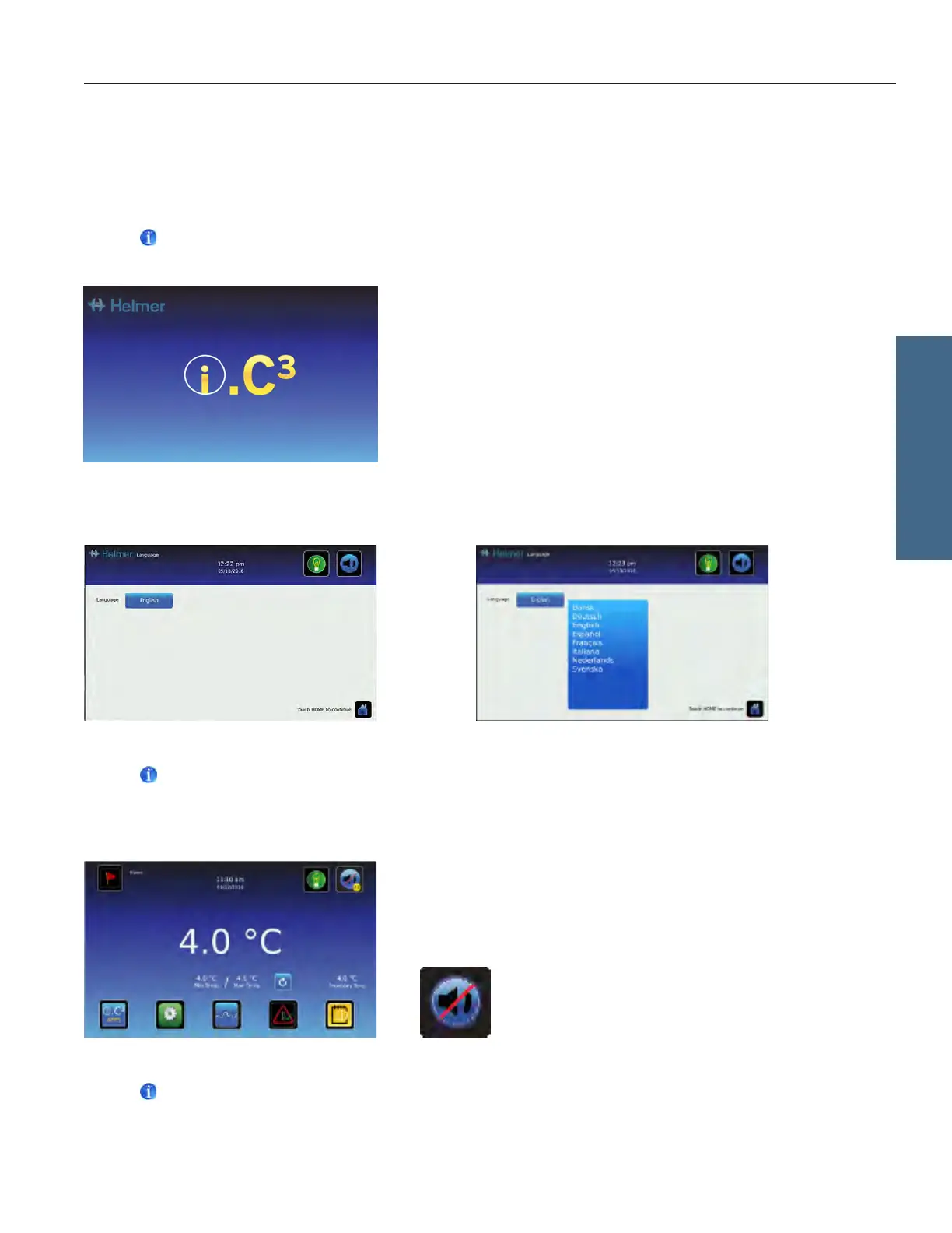 If an alarm sounds, temporarily mute the alarm by touching the Mute button.