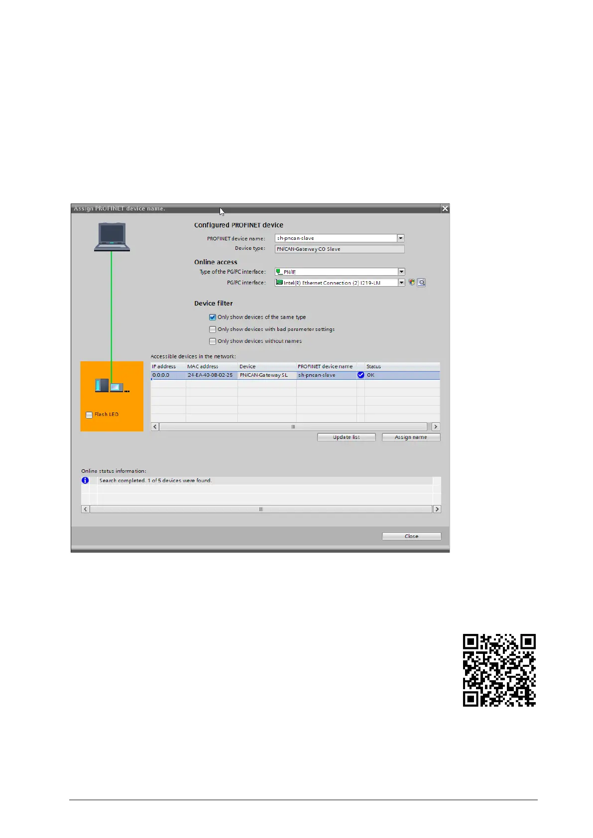 If the PN/CAN Gateway has been assigned the correct PROFINET device name, it is recognized by the