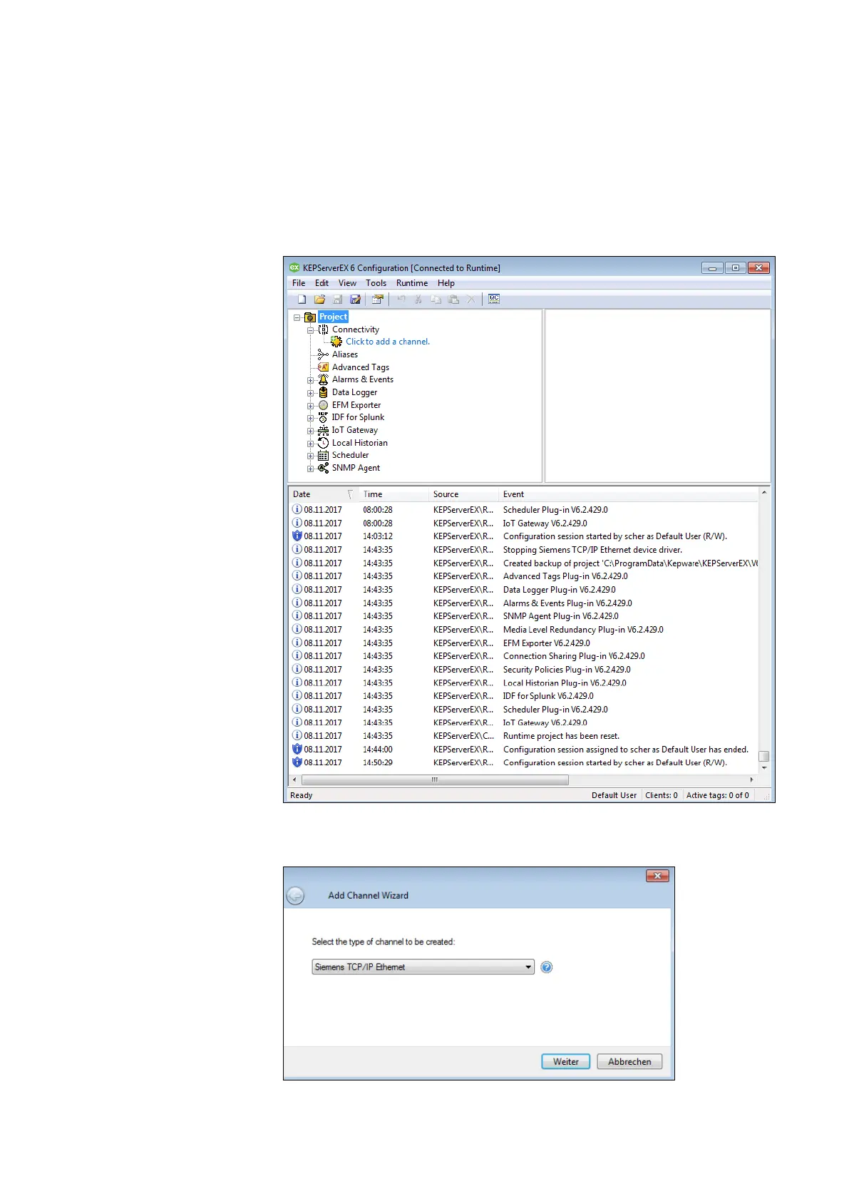 Start program module KEPServerEx, create a new project or