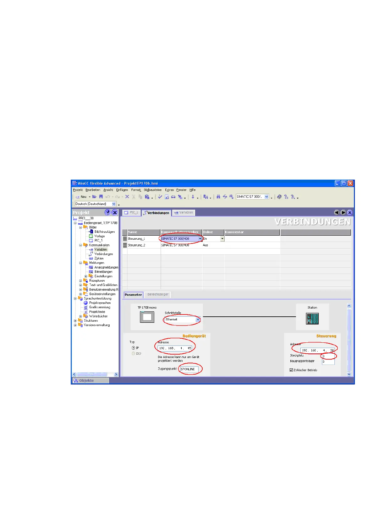 Start WINCC flexible Project and open the connections in the